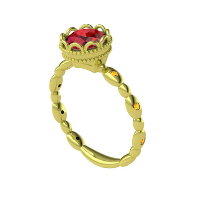Garnet ve sitrin 925 ayar altın kaplama gümüş yüzük