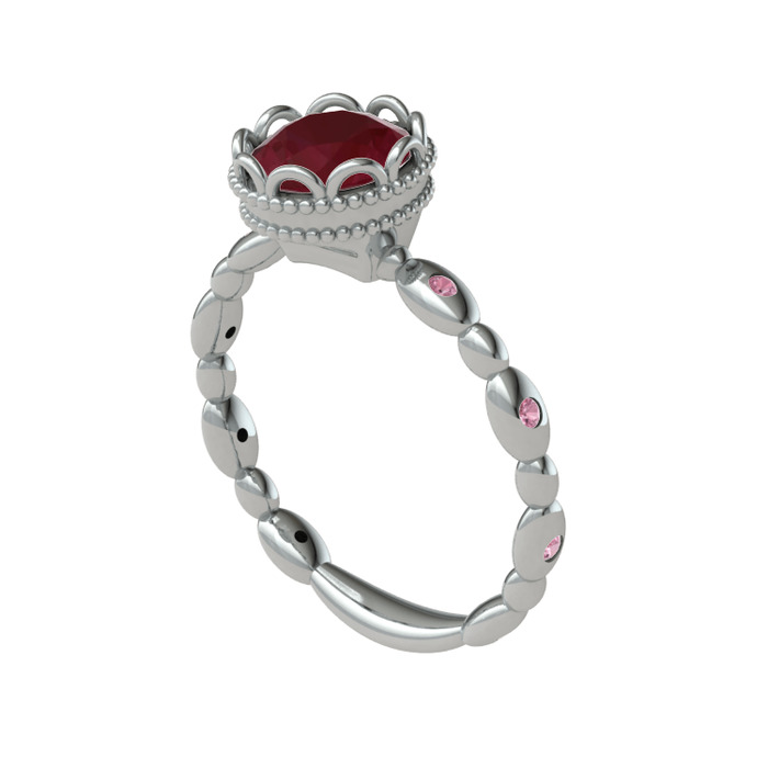 Kök yakut ve pembe kuvars 14 ayar beyaz altın yüzük
