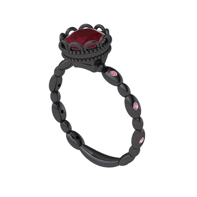 Kök yakut ve pembe kuvars 925 ayar siyah rodyum kaplama gümüş yüzük