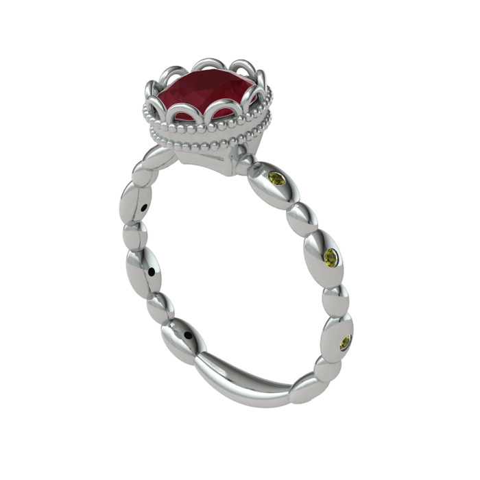 Kök yakut ve peridot 18 ayar beyaz altın yüzük