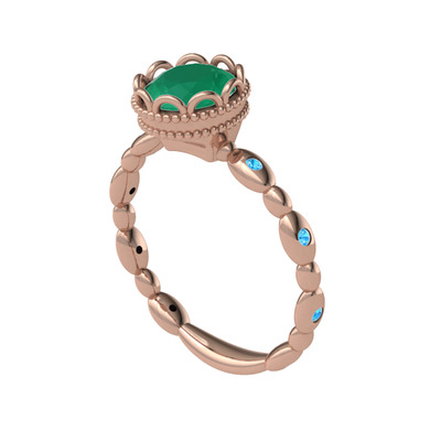 Kök zümrüt ve akuamarin 925 ayar rose altın kaplama gümüş yüzük