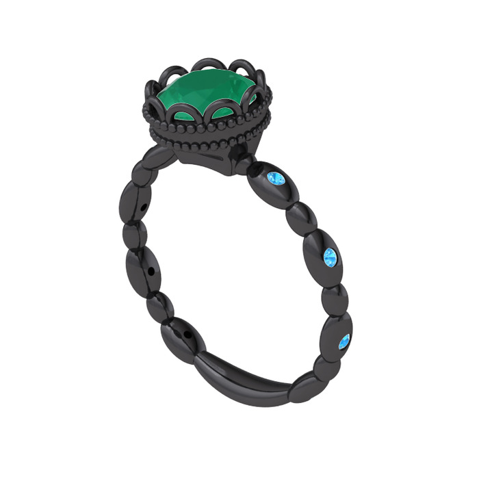 Kök zümrüt ve akuamarin 925 ayar siyah rodyum kaplama gümüş yüzük