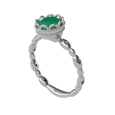Kök zümrüt ve ametist 8 ayar beyaz altın yüzük