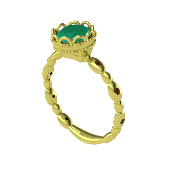 Kök zümrüt ve dumanlı kuvars 18 ayar altın yüzük