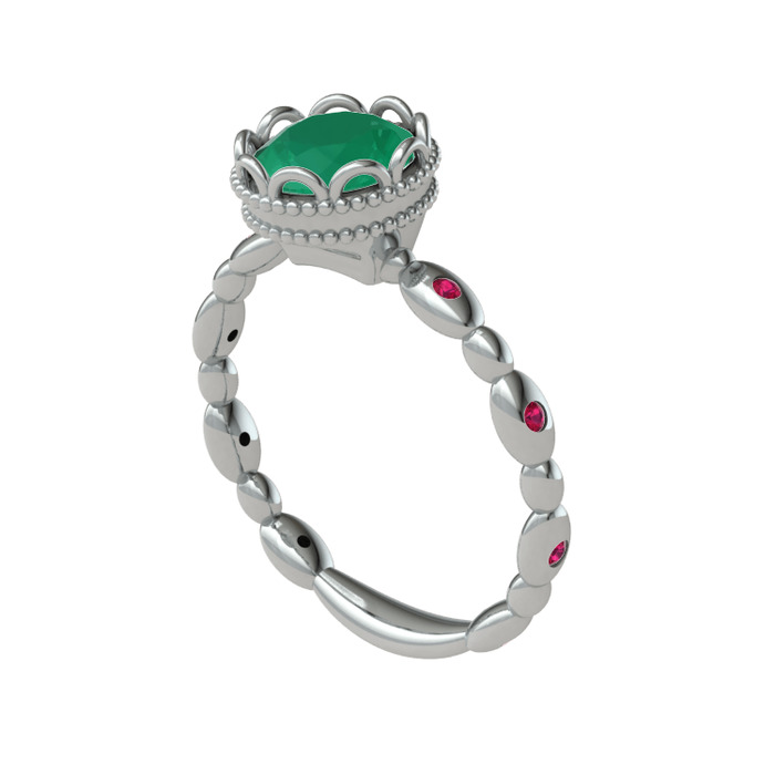 Kök zümrüt ve rodolit garnet 18 ayar beyaz altın yüzük