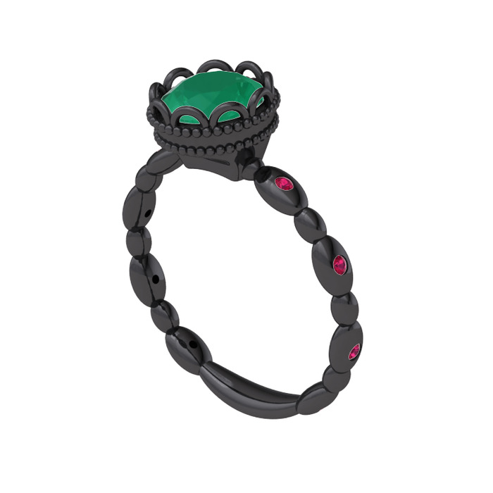 Kök zümrüt ve rodolit garnet 925 ayar siyah rodyum kaplama gümüş yüzük