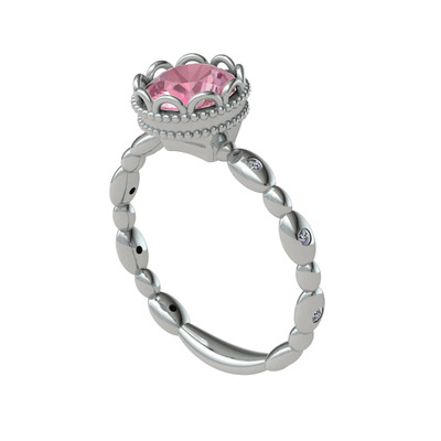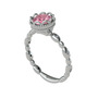 Pembe kuvars ve pırlanta 18 ayar beyaz altın yüzük (0.054 karat)