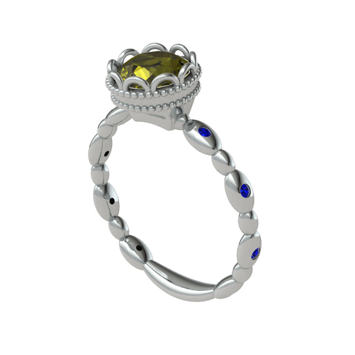 Peridot ve lab safir 14 ayar beyaz altın yüzük