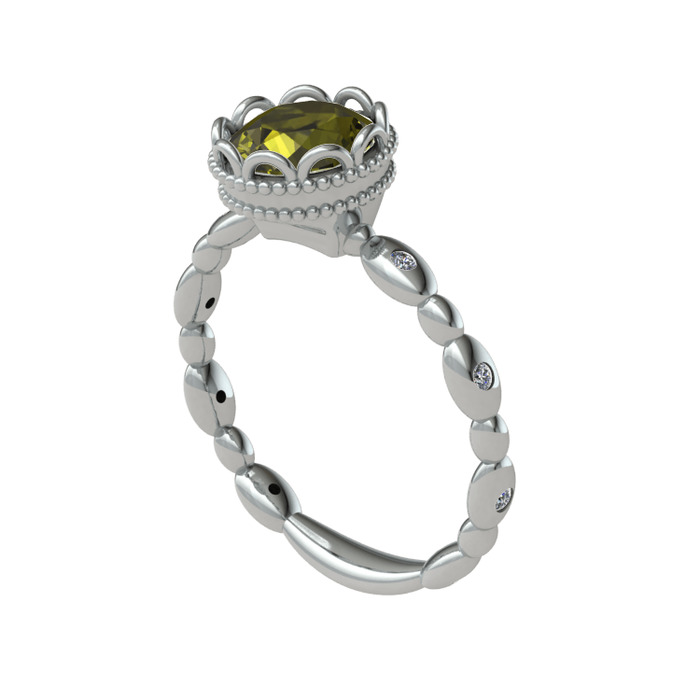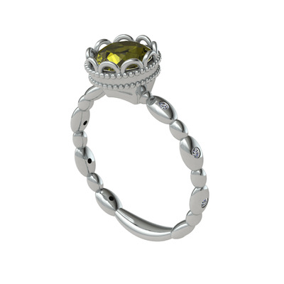 Peridot ve swarovski 8 ayar beyaz altın yüzük