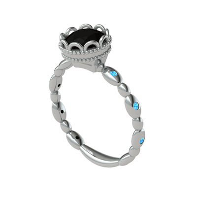Siyah zirkon ve akuamarin 14 ayar beyaz altın yüzük