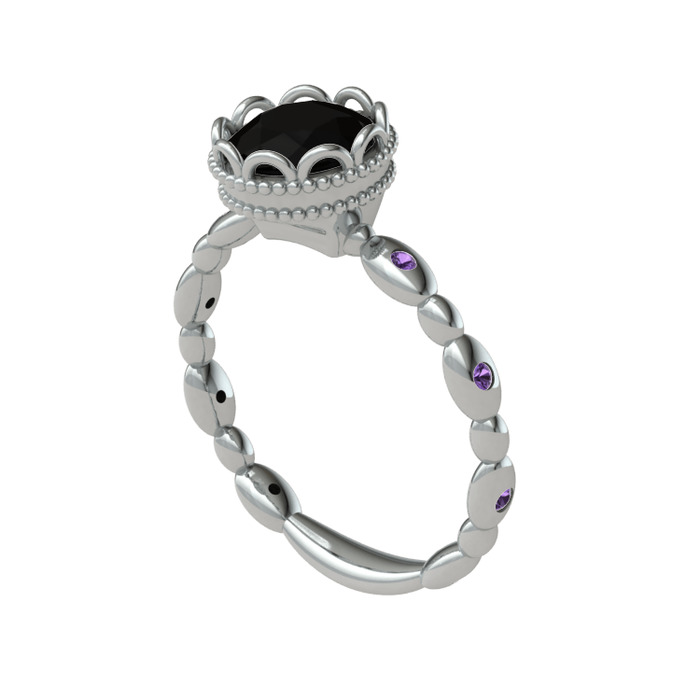 Siyah zirkon ve ametist 18 ayar beyaz altın yüzük
