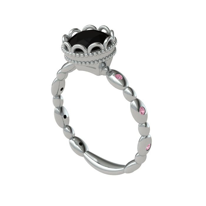 Siyah zirkon ve pembe kuvars 925 ayar gümüş yüzük