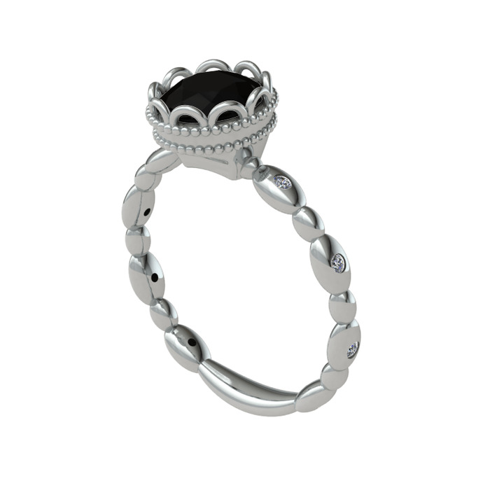 Siyah zirkon ve pırlanta 18 ayar beyaz altın yüzük (0.054 karat)