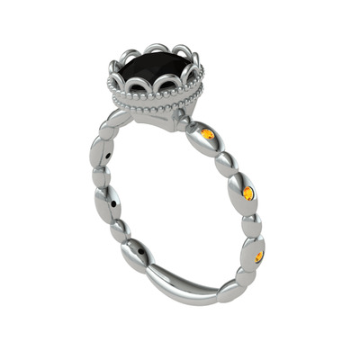 Siyah zirkon ve sitrin 8 ayar beyaz altın yüzük
