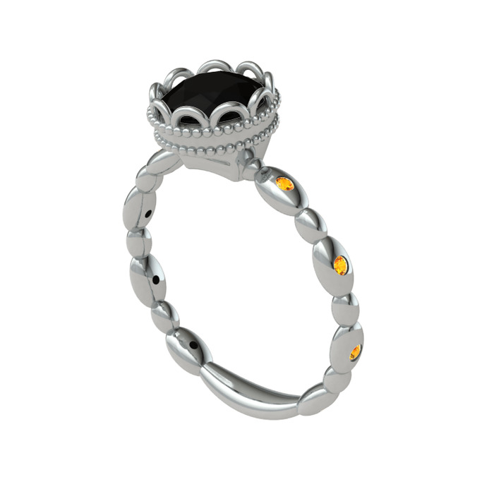 Siyah zirkon ve sitrin 925 ayar gümüş yüzük
