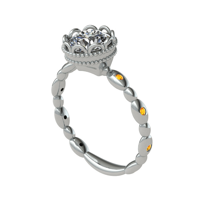 Swarovski ve sitrin 8 ayar beyaz altın yüzük