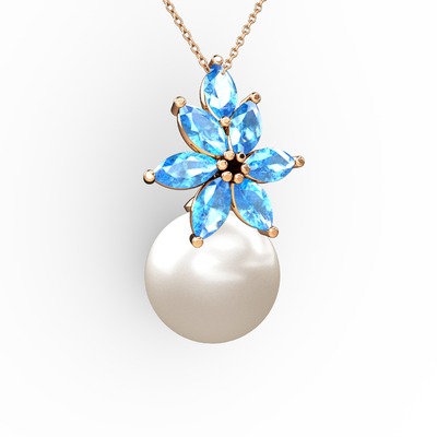 Inci ve akuamarin 8 ayar rose altın kolye (40 cm rose altın rolo zincir)
