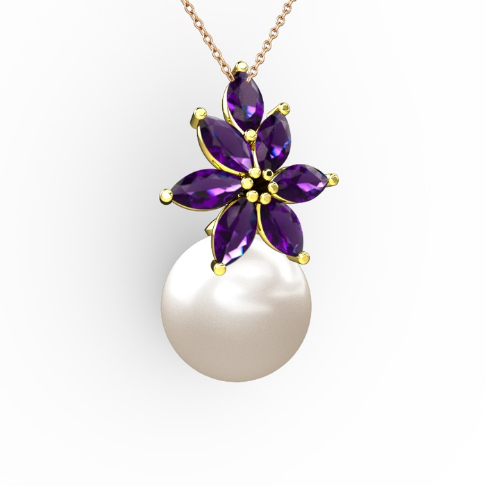 Inci ve ametist 18 ayar altın kolye (40 cm gümüş rolo zincir)