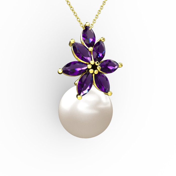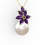 Inci ve ametist 925 ayar altın kaplama gümüş kolye (40 cm altın rolo zincir)
