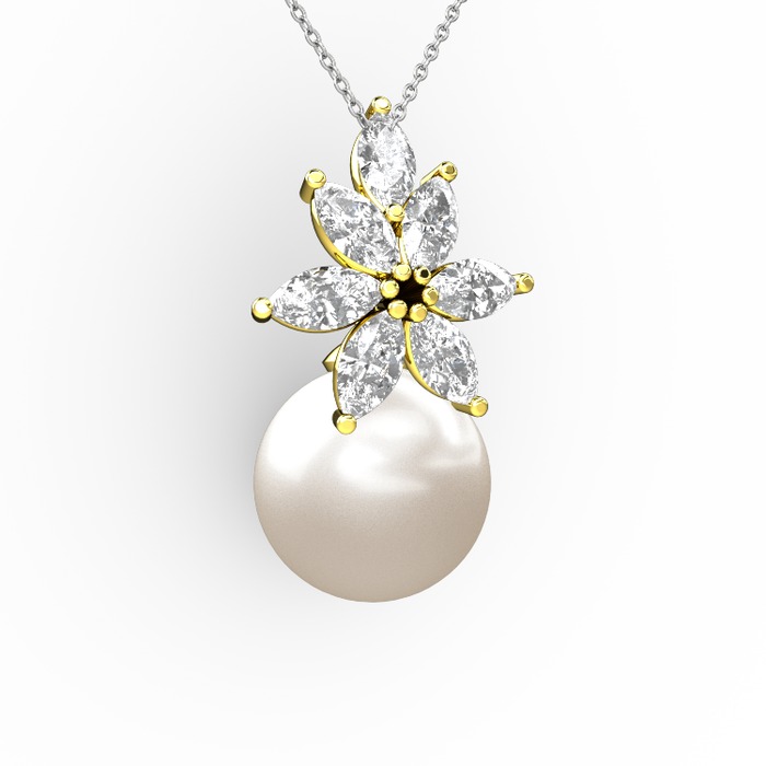 Inci ve beyaz zirkon 8 ayar altın kolye (40 cm beyaz altın rolo zincir)