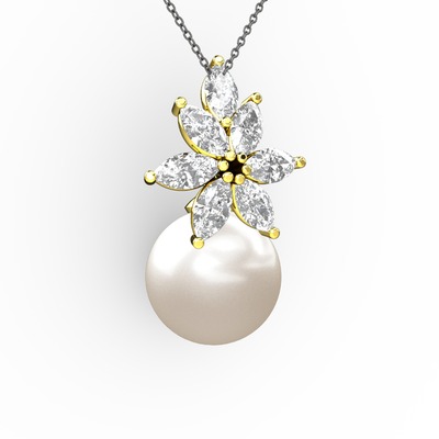 Inci ve beyaz zirkon 925 ayar altın kaplama gümüş kolye (40 cm gümüş rolo zincir)