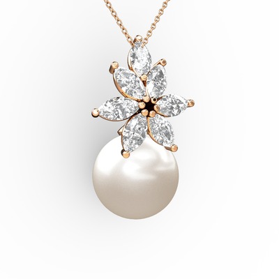 Inci ve beyaz zirkon 925 ayar rose altın kaplama gümüş kolye (40 cm rose altın rolo zincir)