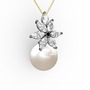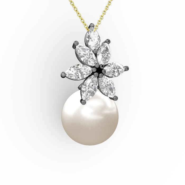 Inci ve beyaz zirkon 925 ayar siyah rodyum kaplama gümüş kolye (40 cm gümüş rolo zincir)