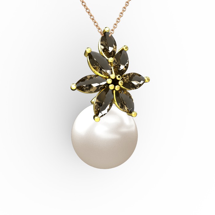 Inci ve dumanlı kuvars 18 ayar altın kolye (40 cm rose altın rolo zincir)
