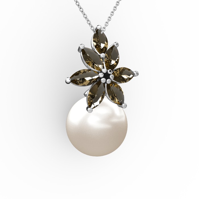 Inci ve dumanlı kuvars 18 ayar beyaz altın kolye (40 cm beyaz altın rolo zincir)