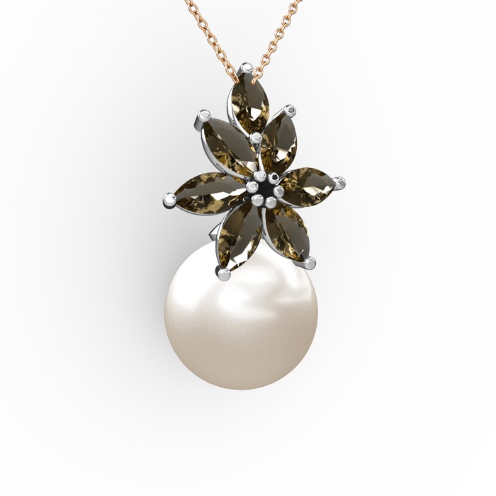 Inci ve dumanlı kuvars 18 ayar beyaz altın kolye (40 cm rose altın rolo zincir)