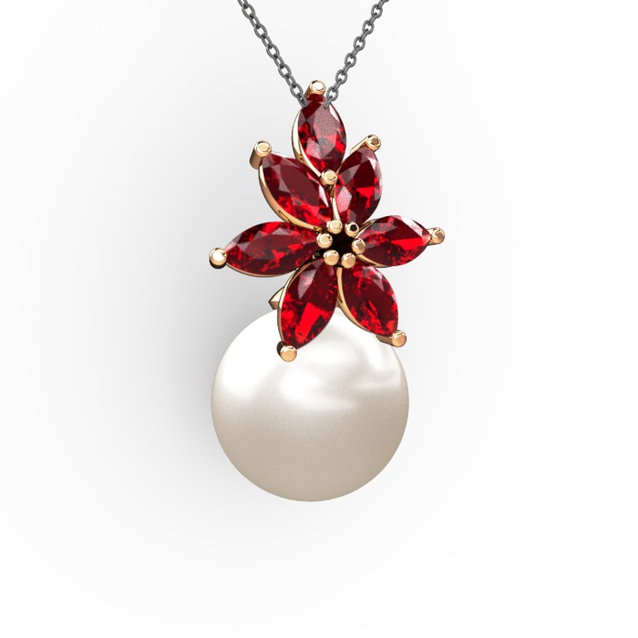 Inci ve garnet 8 ayar rose altın kolye (40 cm gümüş rolo zincir)