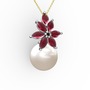 Inci ve kök yakut 14 ayar beyaz altın kolye (40 cm altın rolo zincir)