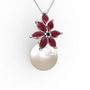 Inci ve kök yakut 18 ayar beyaz altın kolye (40 cm beyaz altın rolo zincir)