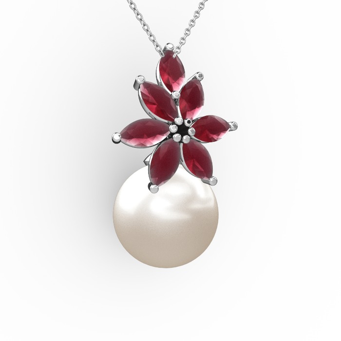 Inci ve kök yakut 925 ayar gümüş kolye (40 cm beyaz altın rolo zincir)