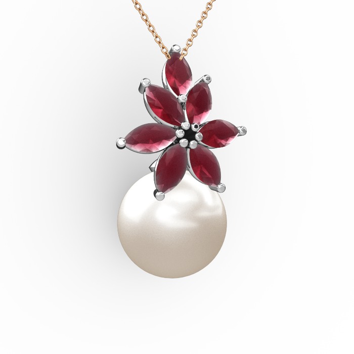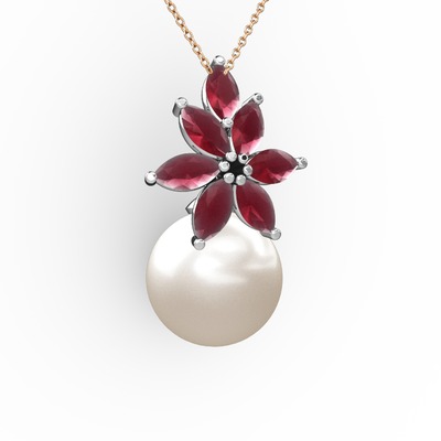 Inci ve kök yakut 925 ayar gümüş kolye (40 cm rose altın rolo zincir)