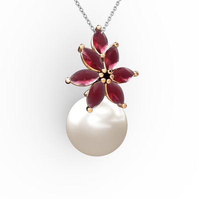 Inci ve kök yakut 925 ayar rose altın kaplama gümüş kolye (40 cm beyaz altın rolo zincir)