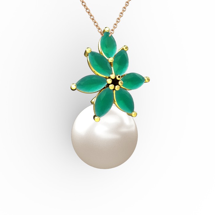 Inci ve kök zümrüt 925 ayar altın kaplama gümüş kolye (40 cm rose altın rolo zincir)