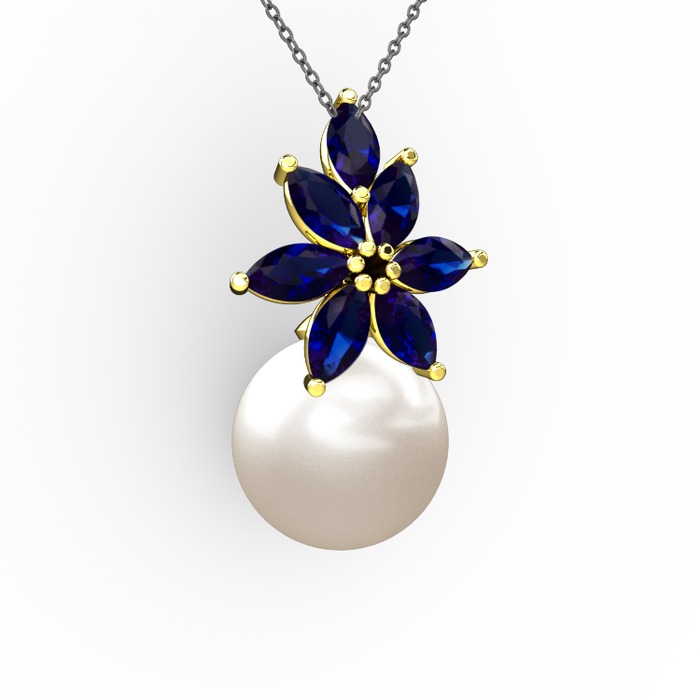 Inci ve lab safir 14 ayar altın kolye (40 cm gümüş rolo zincir)