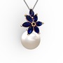 Inci ve lab safir 14 ayar rose altın kolye (40 cm gümüş rolo zincir)