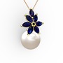Inci ve lab safir 8 ayar altın kolye (40 cm gümüş rolo zincir)