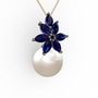 Inci ve lab safir 925 ayar siyah rodyum kaplama gümüş kolye (40 cm rose altın rolo zincir)