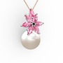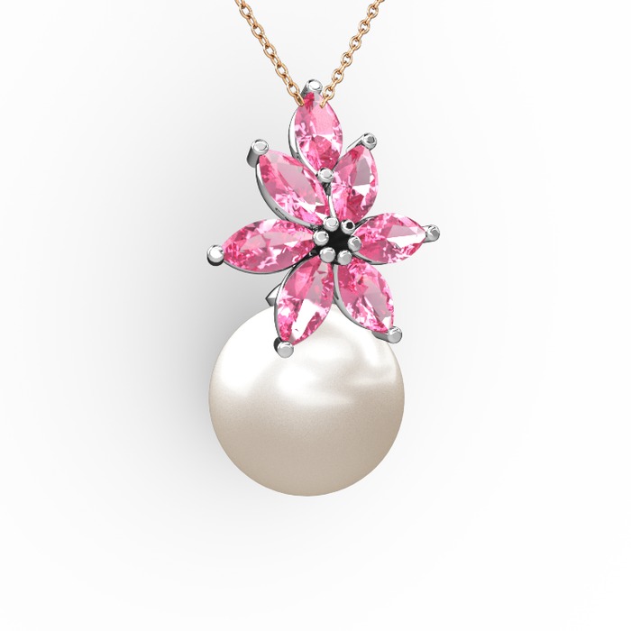 Inci ve pembe kuvars 14 ayar beyaz altın kolye (40 cm rose altın rolo zincir)