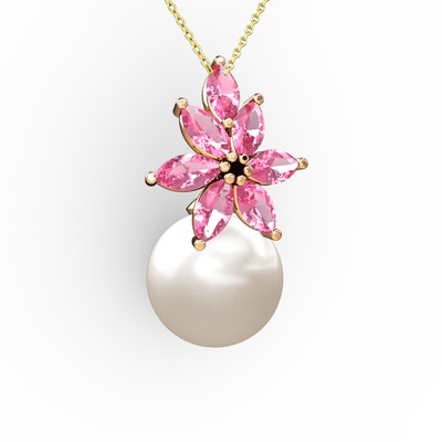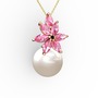 Inci ve pembe kuvars 8 ayar rose altın kolye (40 cm altın rolo zincir)