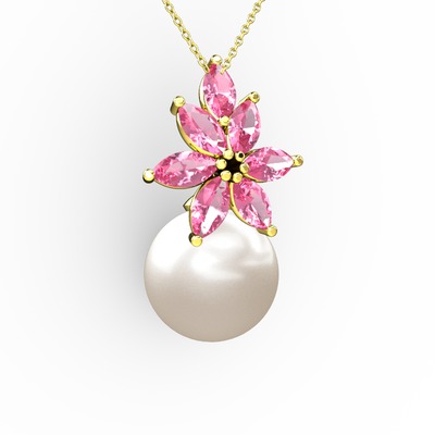 Inci ve pembe kuvars 925 ayar altın kaplama gümüş kolye (40 cm gümüş rolo zincir)