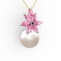 Inci ve pembe kuvars 925 ayar gümüş kolye (40 cm altın rolo zincir)