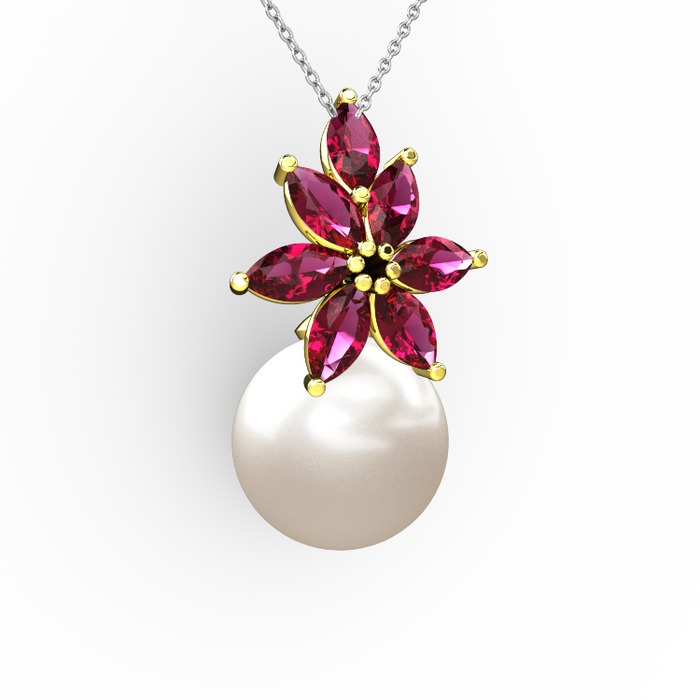 Inci ve rodolit garnet 14 ayar altın kolye (40 cm beyaz altın rolo zincir)