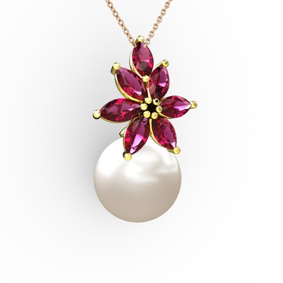 Inci ve rodolit garnet 14 ayar altın kolye (40 cm gümüş rolo zincir)