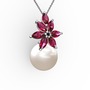 Inci ve rodolit garnet 14 ayar beyaz altın kolye (40 cm gümüş rolo zincir)