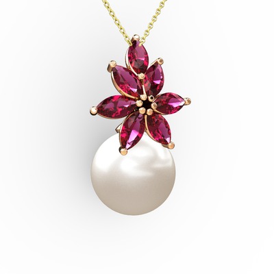 Inci ve rodolit garnet 14 ayar rose altın kolye (40 cm altın rolo zincir)