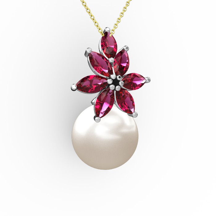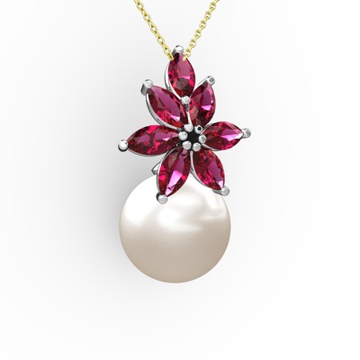 Inci ve rodolit garnet 18 ayar beyaz altın kolye (40 cm altın rolo zincir)